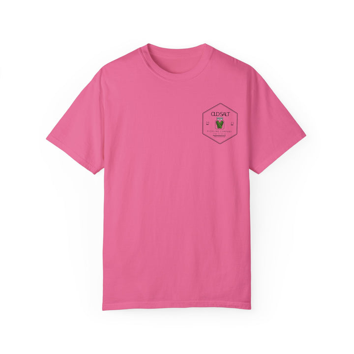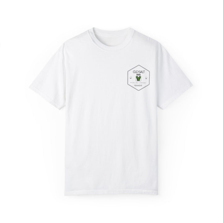 Meet the Unisex Old Salt Hex Logo Tee — a clean, crisp staple for lovers of all things pickled and perfectly designed. Featuring a hexagon-framed logo with the signature pickle graphic and "Old Salt Pickling Company" text, this tee serves subtle style with a hint of quirky flavor.